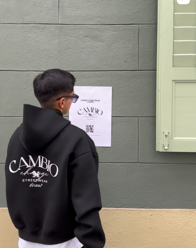 Entworfen in Luzern, verwurzelt in der Streetwear-Kultur und getragen von der Idee, Mode bewusster zu denken. Cambio steht für Veränderung: fair produziert, langlebig designs und gemacht für Menschen, die mehr sehen als nur Kleidung.